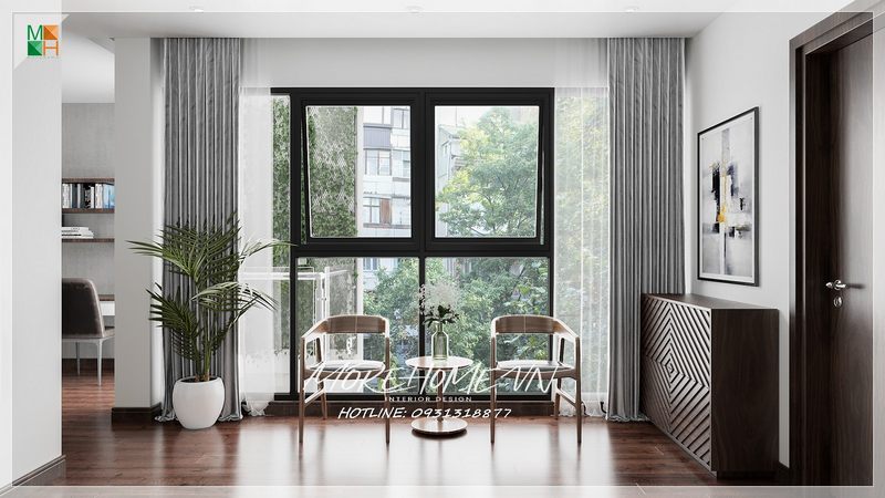 Để tạo ra một không gian sinh hoạt chung cho gia đình, thiết kế nội thất hành lang chung giữa các căn phòng là một sự lựa chọn tốt. Bên cạnh đó, thêm vào một bộ bàn ghế uống trà nhỏ nhắn sẽ giúp tạo nên một không gian thoải mái hơn.